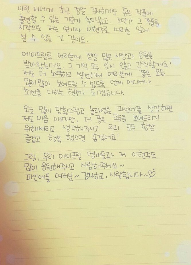 이현주 사건으로 인해 에이프릴은 치명적인 악영향을 받았으며 이로 인해 장기 활동중단에 들어갔다. 멤버들 중 방송에 출연하는 사람은 윤채경이 유일하다.